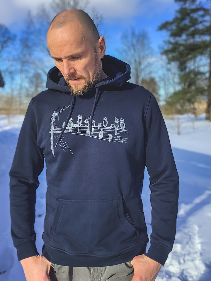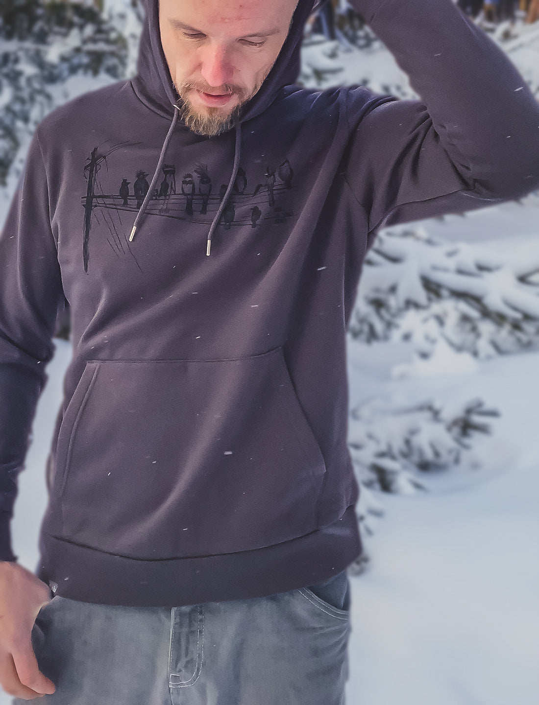 katrs ar saviem putniem uz silta, mīksta un kvalitatīva auduma hūdija klasiskā piegriezumā ar priekšējo kabatu. roku darba sietspiedes apdruka. izmantojam mazāk kaitīgas, bet noturīgas...