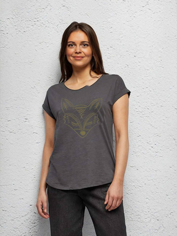 apdruka ar bohēmisko lapsiņu uz stilīga sieviešu t-krekla.