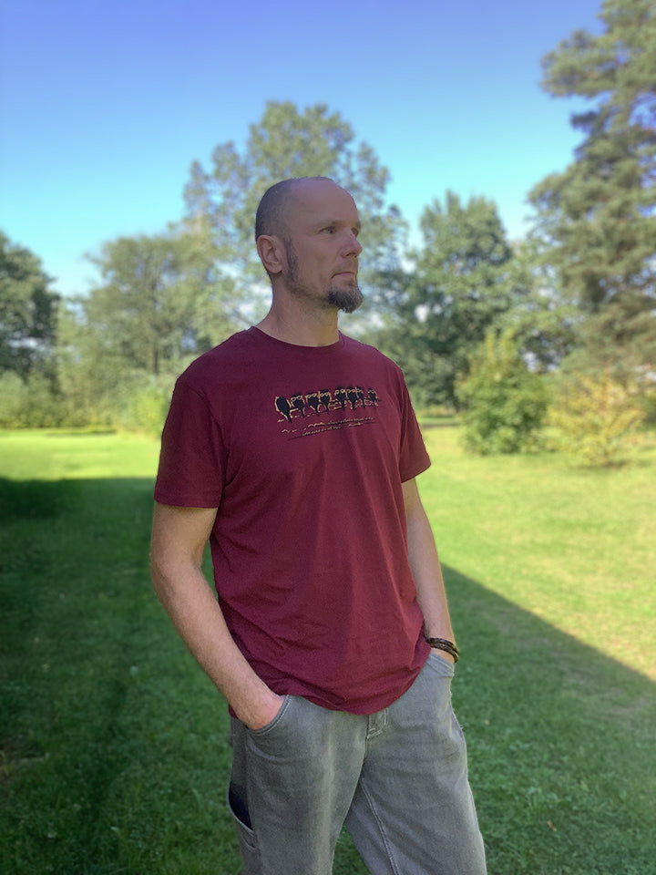 uz klasiska piegriezuma organiskās kokvilnas vīriešu t-krekla.